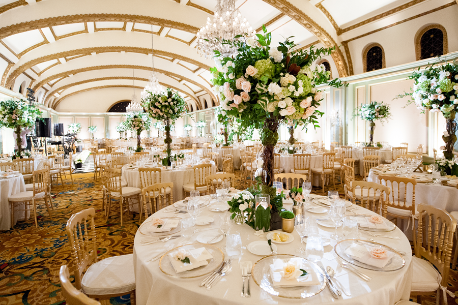 When Allen & Vergine decided to tie the knot, we knew this couple would have a wedding that is as sophisticated and fashionable as they are. With the magical fairytale atmosphere of the Viennese Ballroom at The Langham Huntington, we designed with classic glamour in mind. Gold, glass, and greenery filled the room as guests danced all night on the black & white checkered dance floor.